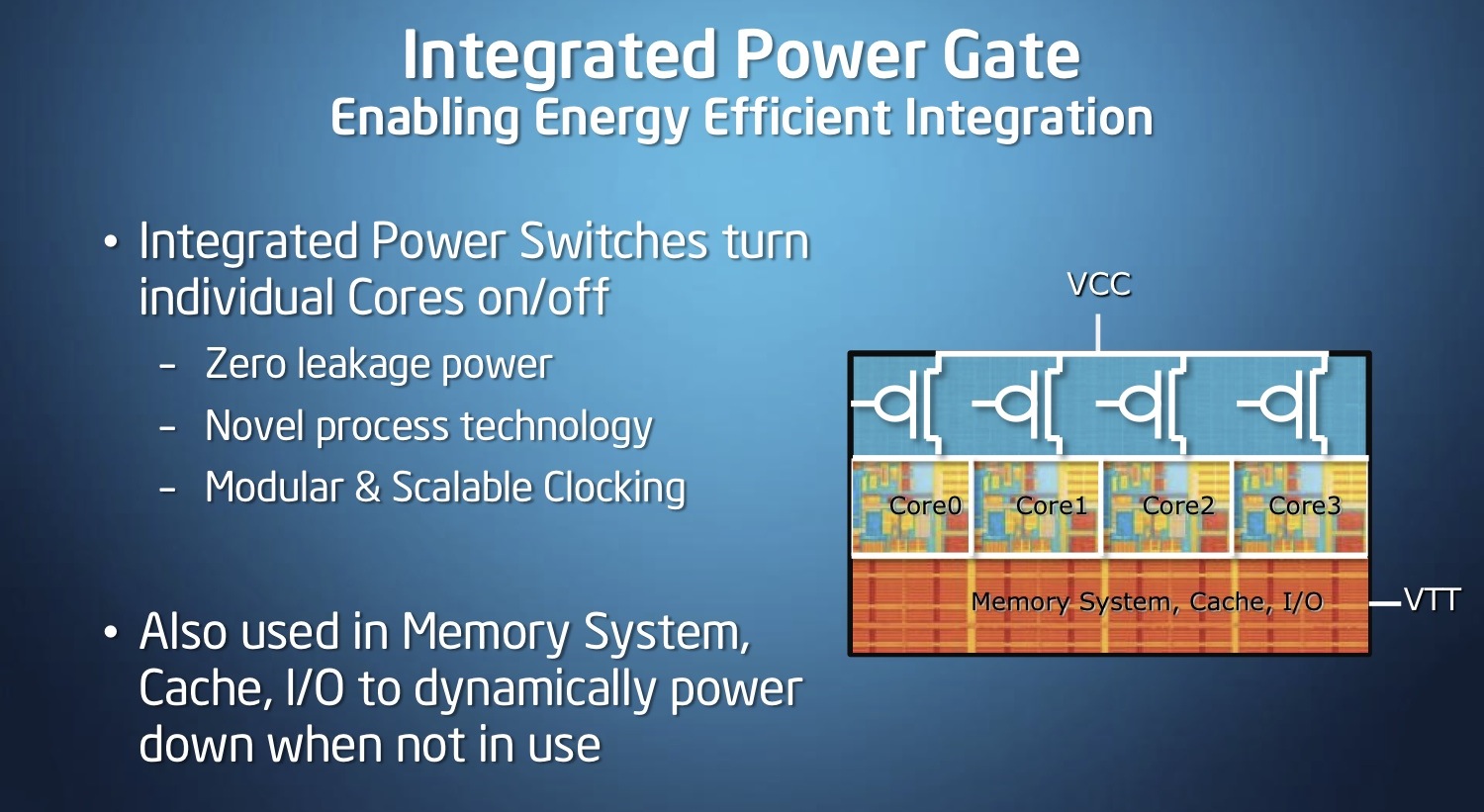 Another advantage of its architecture is the option to separately and dynamically switch single parts of the processor (cores, cache, i/o, memory system) on or off. Compared to the usual processor states this allows to save even more energy on low load (no leak currents in switched off parts).
